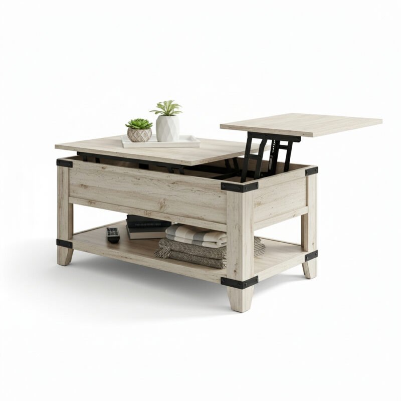 Krelontix Lift Top Coffee Table with Hidden Storage | Modern Farmhouse Wood Table