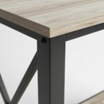 Crafted from high-quality, warp-resistant engineered wood with a textured wood-grain laminate finish, supported by a robust, powder-coated steel frame.