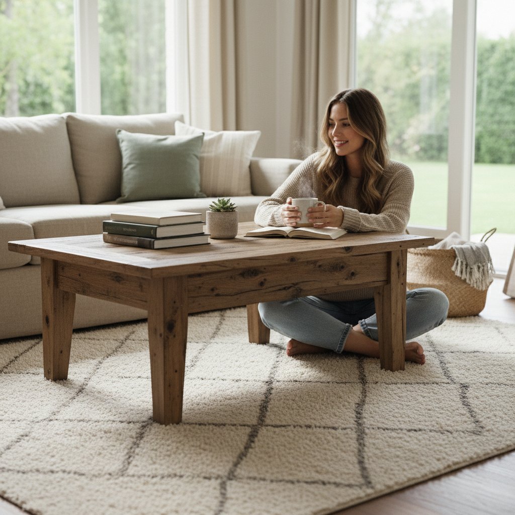 Anchor your living space with the natural beauty and enduring charm of the Krelontix Rustic Wooden Coffee Table. This piece is expertly crafted to be the heart of your room, blending a timeless farmhouse aesthetic with the strength of solid wood. It’s not just a table; it’s a gathering spot for conversations, coffee, and creating memories.